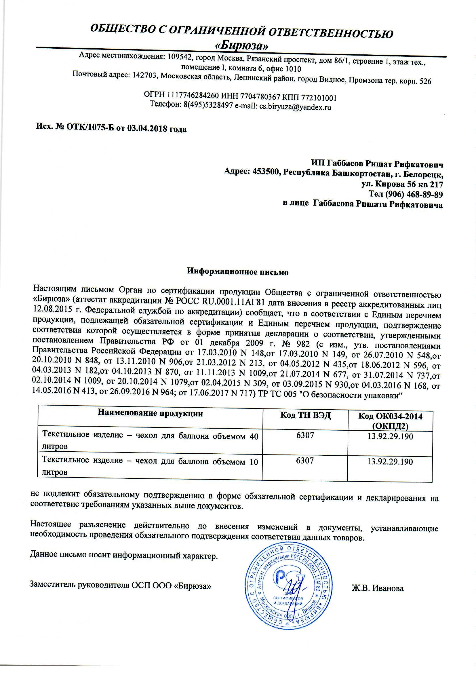Линейка «Чехол для баллона»