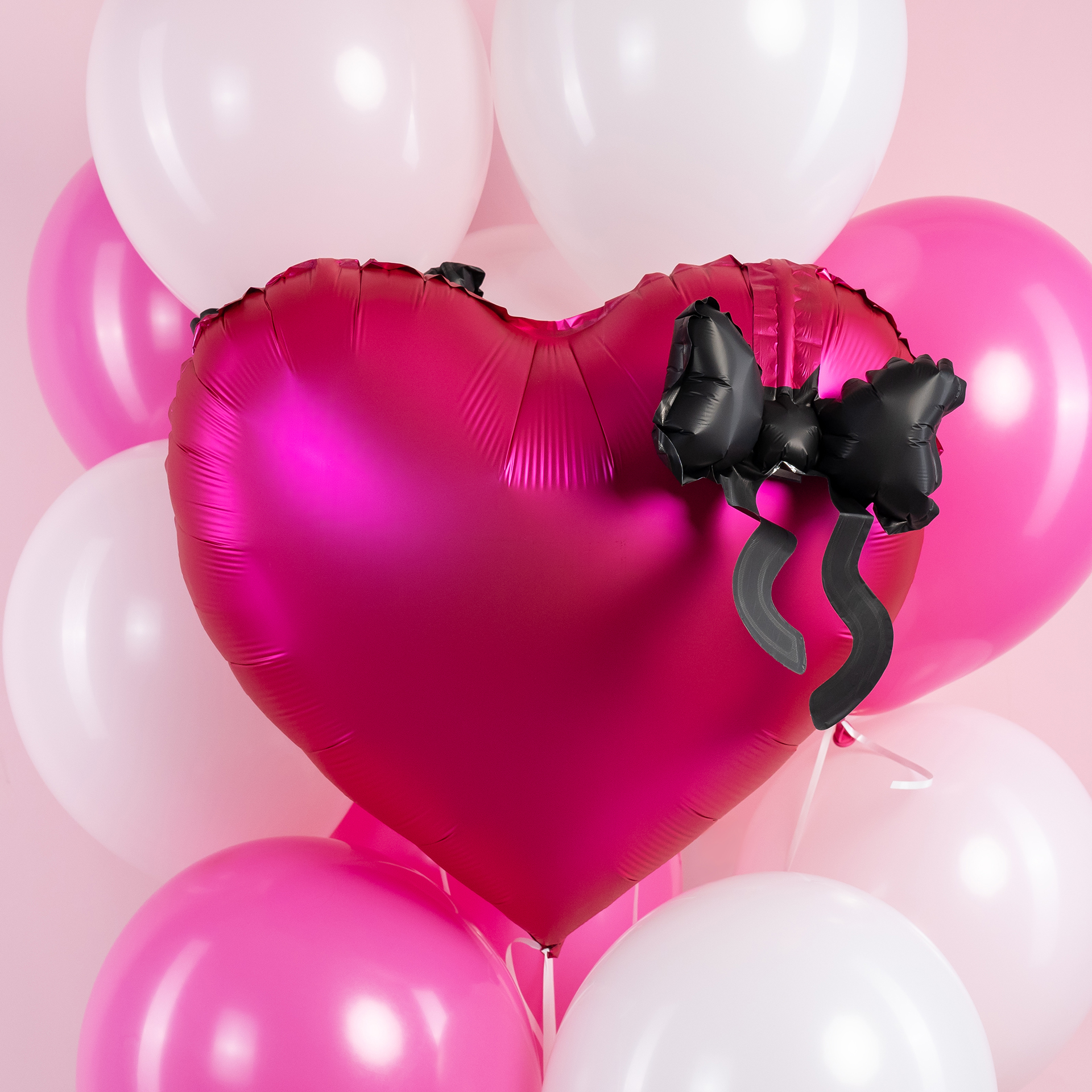 Шар (22''/56 см) Сердце, Черный бант, Фуше, 1 шт. в уп.