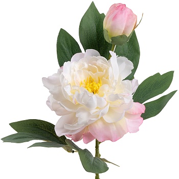 Пион, искусственный, Бело-розовый, 60 см, 1 шт. в упак.