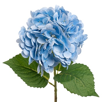 Гортензия, искусственная, с листьями, Голубой, 52 см, 1 шт. в упак.