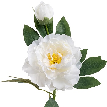 Пион, искусственный, с листьями, Белый, 60 см, 1 шт. в упак.