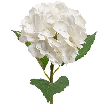 Гортензия, искусственная, с листьями, Белый, 52 см, 1 шт. в упак.